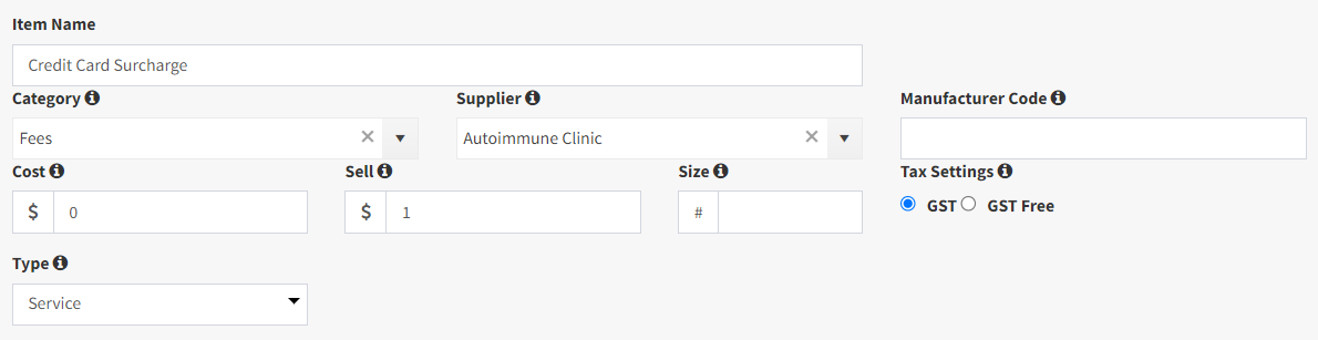 For example: If your Initial Consultation is set for a sell price of $200, a surcharge of 2.1% = $4.20 (200 x 0.021)