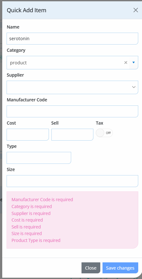 - Type - Choose from options in the drop-down e.g. herbal, supplement, compounding etc.